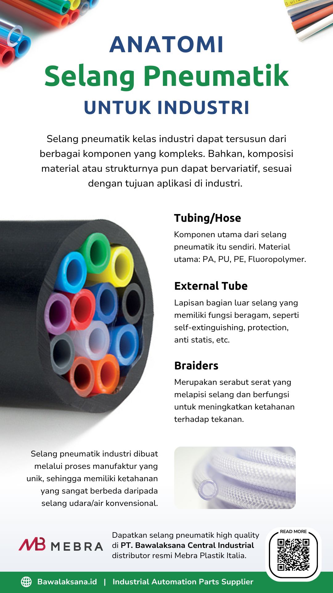 Jika sistem pneumatik di industri Anda membutuhkan tubing industri dengan daya tahan tinggi dan grade kualitas terbaik, kami merekomendasikan produk Mebra untuk apliasi critical di perusahaan Anda.